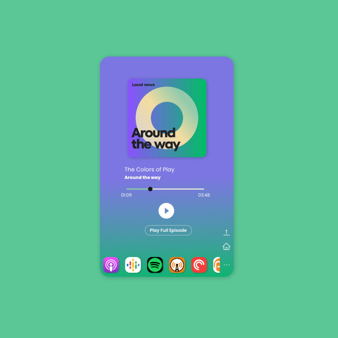 Getting started is really easy, just sign up with your podcast RSS feed URL and we'll bootstrap your Podcard in seconds, complete with an on-brand color palette, automatically generated links to all the popular players, and, of course, Clips.