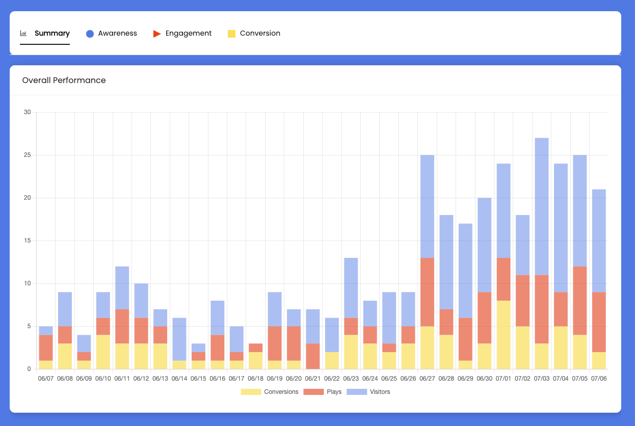 As with everything Podcard, all Clip interactions are logged and presented in your integrated analytics dashboard. Get insights into how your Clips are converting new listeners, which Clips are performing best, and how using Clips is impacting your show's growth.